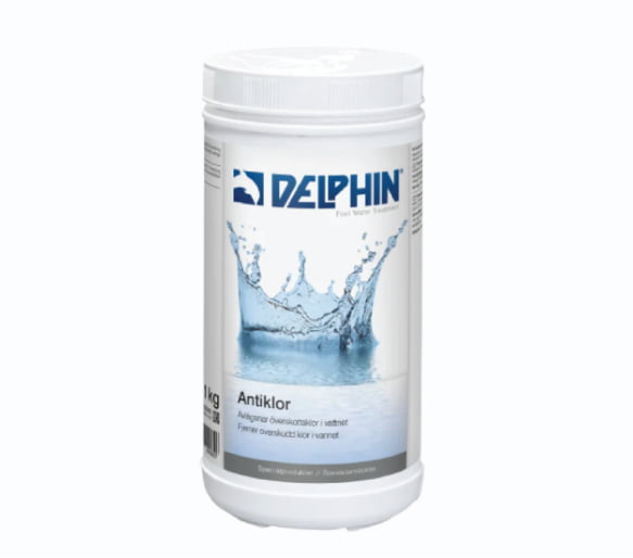 Tilsett riktig mengde: Følg doseringsinstruksjonene på flasken. Tilsett Delphin Antiklor direkte i vannet.